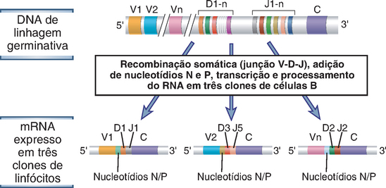 Os genes que codificam diversos receptores de antígenos dos linfócitos B e T são gerados pelo rearranjo, em cada linfócito, de diferentes segmentos gênicos presentes nas regiões variáveis (V), de diversidade (D) e de junção (J). Um novo éxon rearranjado para cada gene de um receptor de antígenos é gerado através da fusão de um dos segmentos gênicos da região V com um dos segmentos gênicos da região D e, finalmente, com um dos genes J no mesmo cromossomo. Esse processo especializado de rearranjo de genes em locais específicos é denominado recombinação V(D)J. (Os termos recombinação e rearranjo são empregados como sinônimos.) A elucidação dos mecanismos de rearranjo dos genes dos receptores de antígenos e, portanto, da base da geração da diversidade imunológica representa uma das principais conquistas da imunologia moderna.